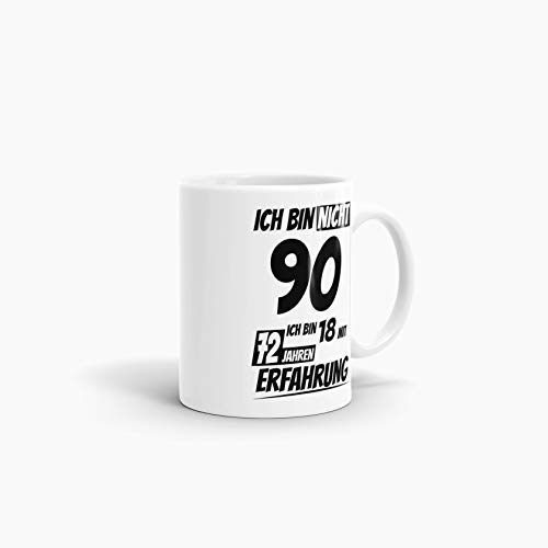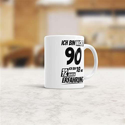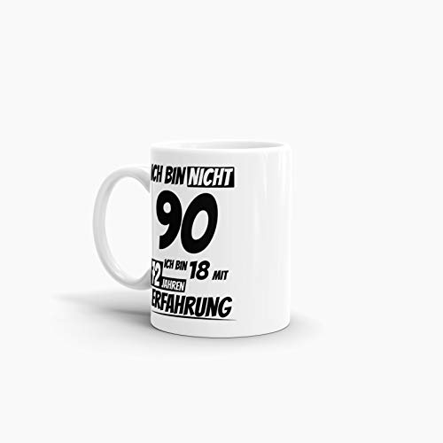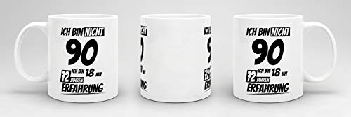 Details: Geburtstags-Tasse“Ich bin 90 mit 72 Jahren Erfahrung“ Weiss/Geburtstags-Geschenk/Geschenk-Idee/Lustig/mit Spruch/Witzig/Spaß/Beste Qualität – 25 Jahre Erfahrung