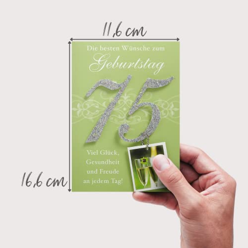 Geburtstagskarte zum 75. Geburtstag Basic Classic- Steinturm- 11,6 x 16,6cm