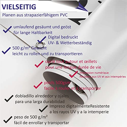 ✅ VIELSEITIG ANWENDBAR: Diese Werbeplane ist extrem wetter- & UV-beständig. Sie läßt sich rollen und einfach umsetzen und wieder anbringen.