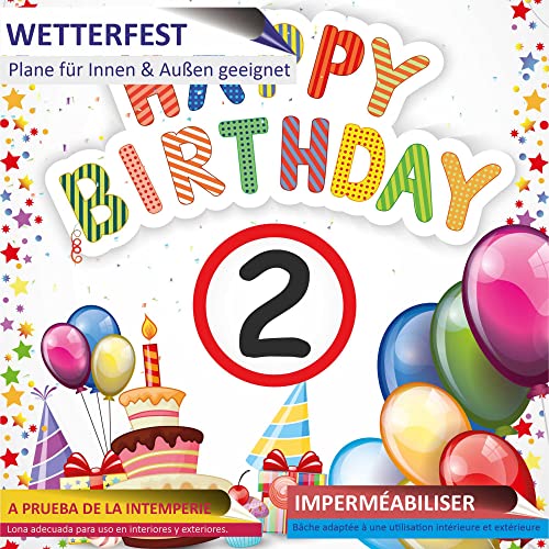 ✅ HOCHWERTIGE QUALITÄT: Individuell beschriftete Plane für Ihr Geburtstagskind mit Jahreszahl. Hochwertig gedrucktes Banner aus 500g/m² Planenmaterial. Überall leicht aufhängbar. Die Plane ist umlaufend gesäumt und aller 50 cm mit einer Öse zum leichten aufhängen z.B. mit Kabelbindern versehen.