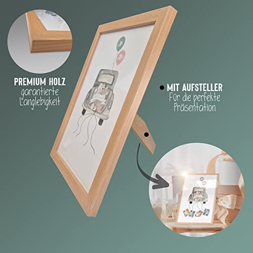 🎁 𝐁𝐋𝐄𝐈𝐁𝐄𝐍𝐃𝐄𝐑 𝐄𝐈𝐍𝐃𝐑𝐔𝐂𝐊 | Der Geldgeschenk Hochzeit Bilderrahmen besteht aus massivem Holz. – Garantierte Langlebigkeit und wertige Haptik! Das Just Married Poster ist auf dickem, seidenmattem Papier (400g/m²) mit einer matten, markenerprobten Oberfläche gedruckt. Größe DIN A4