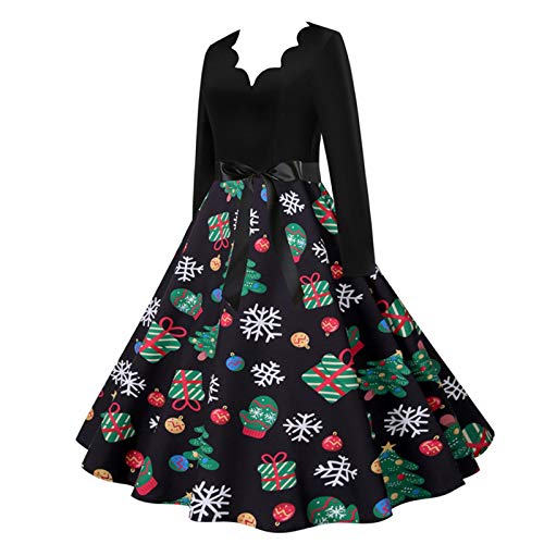 Damen Weihnachtskleid Abendkleider Oversize V-Ausschnitt Hepburn Kleid Faltenrock Winter Langarm Weihnachten Kleider mit Reißverschluss Vintage Slim Fit Partykleid Weihnachtspullover Damen