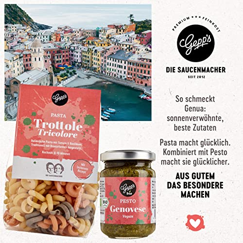 FEINKOST-SPEZIALITÄTEN: Der Präsentkorb ist eine Zusammenstellung der besten italienischen Delikatessen nach den originalen Rezepturen des Familienunternehmens Gepp’s. ***Unser Nudel Jubel sind aktuell leider ausverkauft. Stattdessen wird unser Kräutersalz geliefert.***