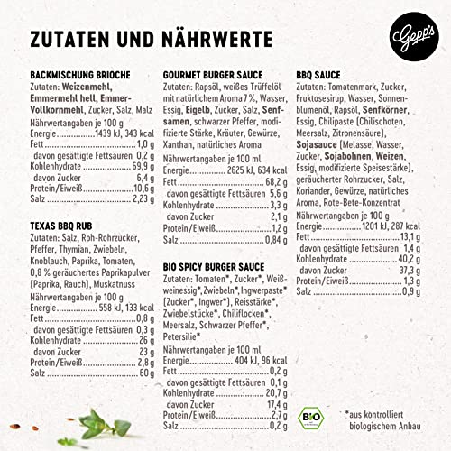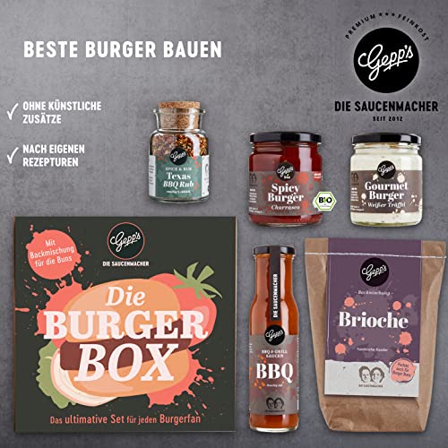Details: Gepp’s Feinkost Burgerbox Geschenkset I Gefüllt mit feinsten Grill- und BBQ-Saucen, Texas BBQ Rub und Brioche I…