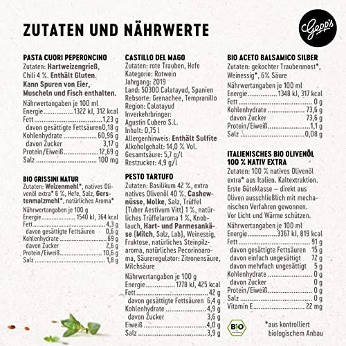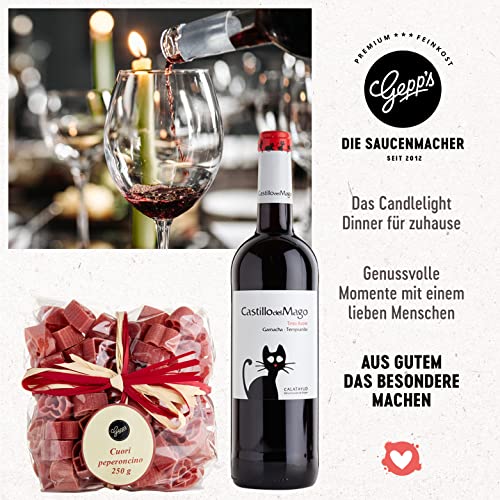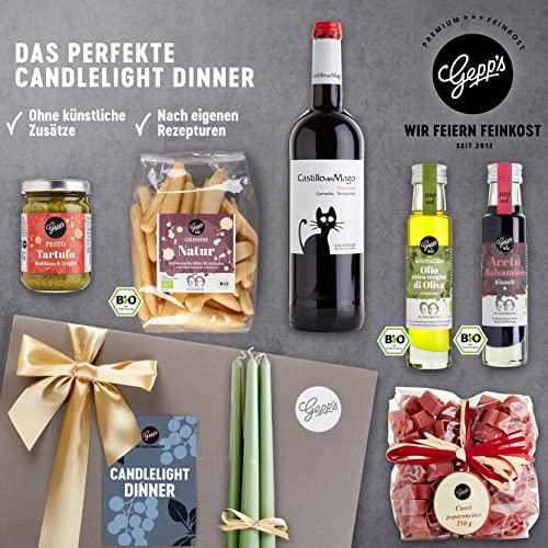 Details: Gepp’s Feinkost Candle Light Dinner Box I Romantisches Dinner zu Zweit mit spanischem Rotwein, Pasta in Herzform…