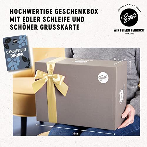 ROMANTISCHES DINNER ZU ZWEIT MIT GEPP’S: Man muss nicht immer ins Restaurant, um ein köstliches Abendessen zu genießen – viel entspannter geht es mit unserer Candle Light Box für Zuhause. Alles, was dazu benötigt wird, ist schon in unserer liebevoll verpackten Gourmet Geschenkbox enthalten!