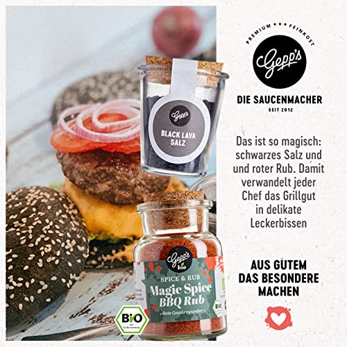 ALLES FÜR DEN GRILLMEISTER: Gefüllt mit den besten Saucen-Spezialitäten und Gewürzen, hergestellt nach den Original-Rezepturen des Familienunternehmens Gepp’s, ist diese Wundertüte das perfekte Geschenk für jeden Mann am Grill: egal, ob Vater, Opa oder Ehemann.***Unser Black Lava Salz ist aktuell leider ausverkauft. Stattdessen wird unser geräuchertes Paprika Salz geliefert.***