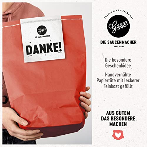 EINFACH DANKE SAGEN MIT GEPP’S: Möchtest du einfach mal wieder Danke sagen? Unsere Geschenktüte bietet dir die perfekte Möglichkeit. Sagt ,,Vielen Dank“ mit unserem Delikatessen- Geschenk-Set nach den originalen Rezepturen des Familienunternehmens Gepp’s.