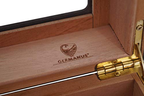 GERMANUS Zigarrenhumidor für ca. 50 Zigarren. (Die exakte Kapazität hängt von der Größe der von Ihnen eingelagerten Zigarren ab.) Maße ca. 26 x 22 x 11 cm