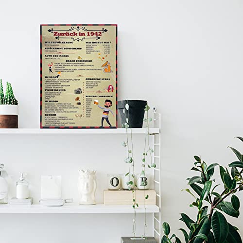 【 MULTIFUNKTIONAL 】 Verschenken alleine oder rahmen Sie es, als Geschenk zum 80. Geburtstag oder Hochzeitstag an Frauen / Männer ein. Kleben Sie es an die Wand oder Tür oder stellen Sie es als hervorragende Partydekoration auf den Kuchen- und Süßigkeitentisch. Halten Sie die Plakathand als einzigartige Fotoautomaten-Requisite. Und es kann auch als eigenständiges Dekorationsstück für Ihr Zimmer, Büro oder Geschäft verwendet werden und erinnert an viele besondere Erinnerungen an 1942.