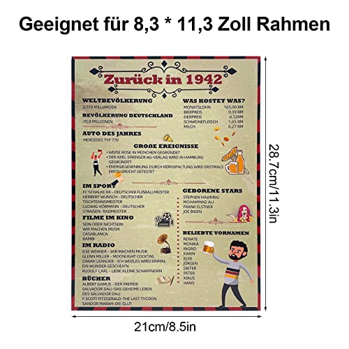 Details: Geschenk 80. Geburtstag Männer Frauen „Zurück in 1942“ Dekoration Geburtstag Poster Geburtstagskarte 80 Jahre 1942 Geboren – 80. Hochzeitstag- Wand Bild Vintage Tischdekoration- persönliches Geschenk