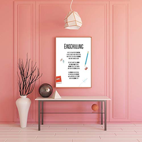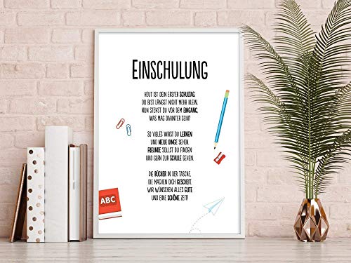 Details: Geschenk Karte EINSCHULUNG Kunstdruck Schulanfang Schulbeginn Kind Schule Bild ohne Rahmen DIN A4