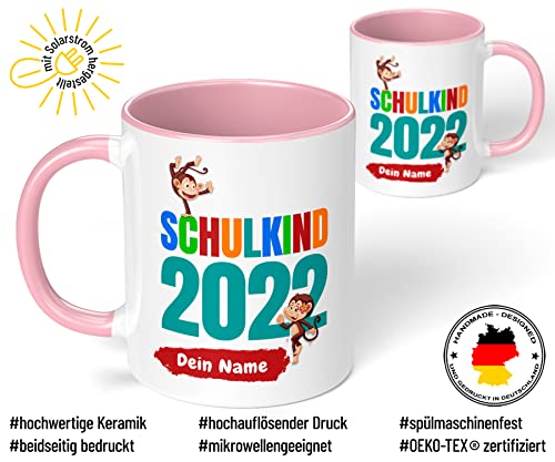 Die wunderschöne personalisierte Tasse „Schulkind 2022“ist das ideale Geschenk zum Schulstart für alle Mädchen und Jungs. Erhältlich in einer großen Auswahl von 15 farblichen Tassenvarianten!