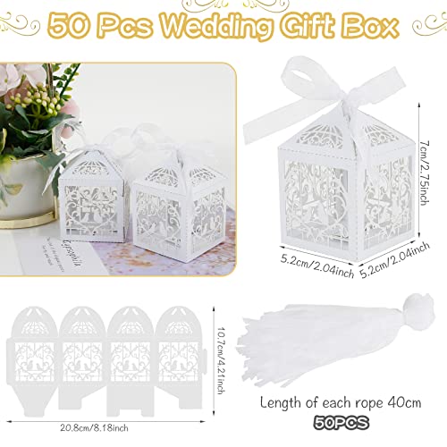 🎁【50 Sets】50 weiße Hochzeitsgutschachteln mit 100 weißen Bändern. Größe: 2,75 x 2,04 x 2,04 Zoll / 7 x 5,5 x 5,2 cm, 15,74 Zoll/40 cm jedes Seil, genug Länge, um auf einige schöne Anhänger zu binden