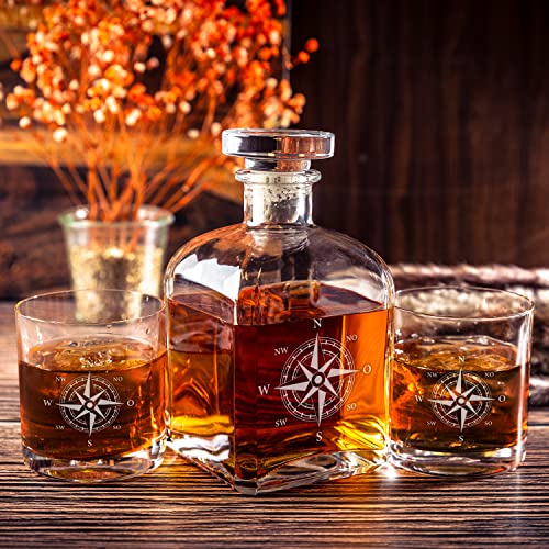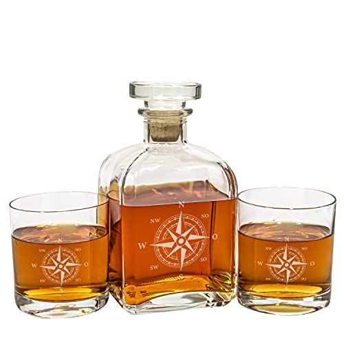 Details: Geschenke 24 Whisky Karaffe mit Gravur I Edel I 2 Gläser I Mit maritimem Kompass Nautikrose I gravierte Geschenkidee für…