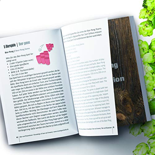 BIERBUCH: Büchlein im handlichen A6 Format (104 Seiten, im Wert von €5,95) mit Vorstellung verschiedenster Biere. Dazu jede Menge interessante Infos im Bierbuch: Wie wird Bier hergestellt? Welches Glas für welche Sorte Bier? Wie prostet man in anderen Ländern? Dazu beliebte Bierspiel-Anleitungen. Außerdem ausgefallene Bier-Geschenk-Tipps – Wie wäre es z.B. mit einer Übernachtung im Bierfass? Mit Bierbewertungsbogen zum Verkosten der Biere in diesem Biergeschenk