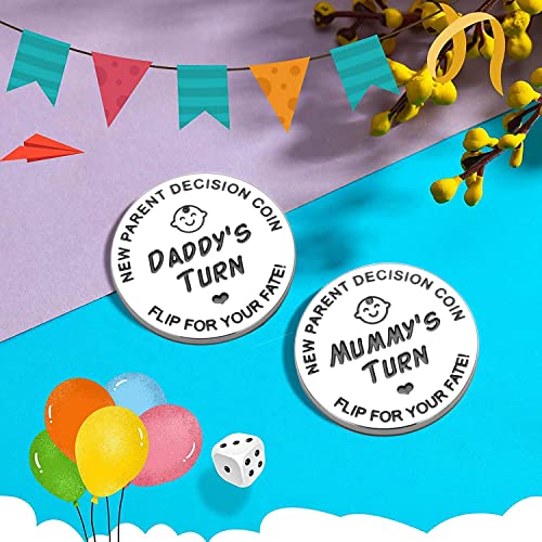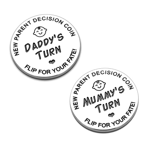 【Neue Elternentscheidungsmünze】Tolles Geschenk für die neuen Eltern,um eine Entscheidung zu erleichtern.Sie können frischgebackene Eltern dabei unterstützen,eine schnelle Einigung in Säuglingsangelegenheiten zu erzielen.Es kann neue Elternstreitigkeiten aufgrund von Säuglingsproblemen reduzieren und gleichzeitig die Freude an der Begleitung des Babys erhöhen.Bestes Geschenk für werdende Papa Mama.