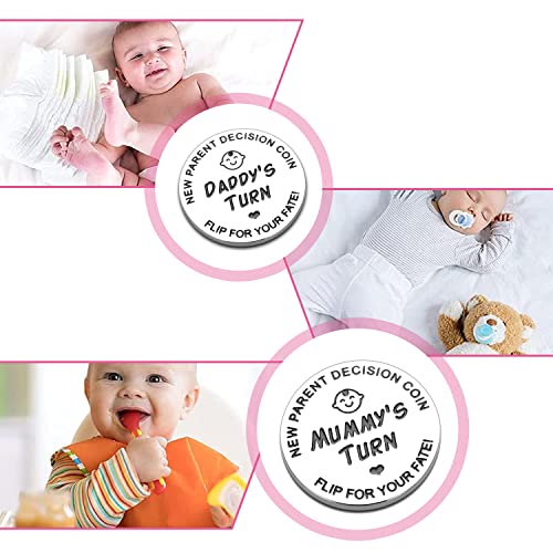 1.【Neue Elternentscheidungsmünze】Tolles Geschenk für die neuen Eltern,um eine Entscheidung zu erleichtern.Sie können frischgebackene Eltern dabei unterstützen,eine schnelle Einigung in Säuglingsangelegenheiten zu erzielen.Es kann neue Elternstreitigkeiten aufgrund von Säuglingsproblemen reduzieren und gleichzeitig die Freude an der Begleitung des Babys erhöhen.Bestes Geschenk für werdende Papa Mama.