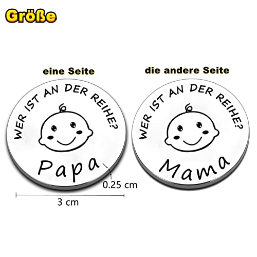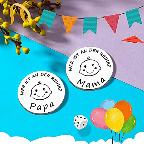 👶【Süßes Design】👶: Unsere Entscheidungsmünzen aus hochwertigem Edelstahl,werden nicht rosten und verblassen.3 cm Durchmesser und wiegt nur 10 g und Sie können es überall hin mitnehmen.Beidseitiger Druck mit Papas Drehung auf einer Seite und Mamas Drehung auf der umkehren.