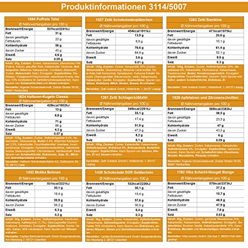 …3 Schokoladen Täfelchen DDR Geldscheine, Zetti Edel Bitter 75% Cacao, Halloren Kugeln Sahne Cacao Creme, Brocken Tröpfchen, Apfelsinen & Zitronenschnitten, Zetti Schokoladenplätzchen, Chokis Märchen + Kater inkl. anlassbezogener Geschenkverpackung