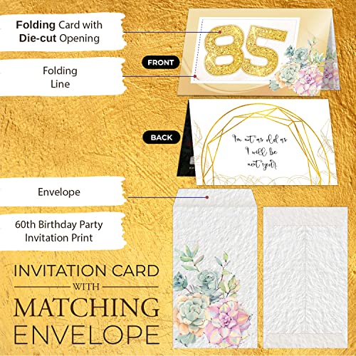 Be the first to review “Gestanzte Einladungskarte zum 85. Geburtstag mit passendem Umschlag. 24 Sätze. Gefaltet auf 57×96 mm, 350g Premium…”