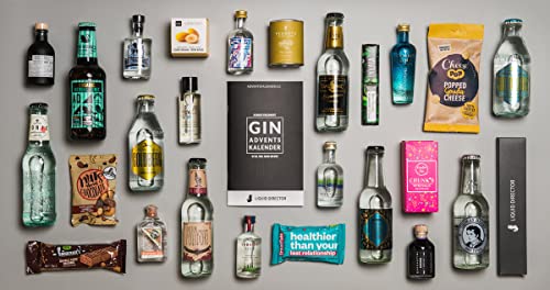 🎄 Dein Gin-Adventskalender mit 8 +1 Gins in Original-Miniaturen, 8 Tonic Water, 8 Snacks + 1x Liquid Director Glasstrohhalm-Set