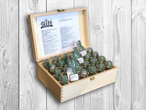 Gin-Adventskalender Exklusiv 2022 in der edlen Holz Geschenkbox ® 24 á 3 cl exklusive Ginsorten aus aller Welt