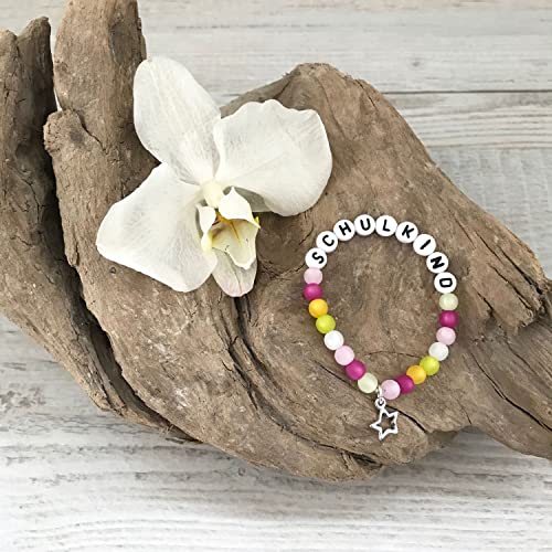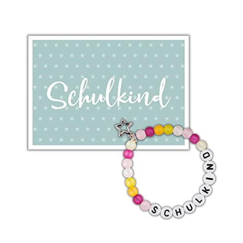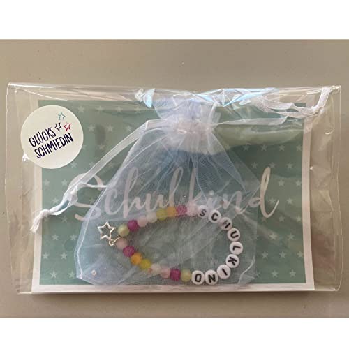GLÜCKSBRINGER: Das hochwertige Perlen Armband mit Schulkindperlen mit Spruchkarte ist ein schönes Geschenk für die Einschulung.
