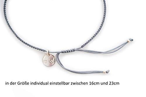 Dieses handgefertigte Glücksbändchen besteht aus einem Element mit einer Shri Yantra aus 925er Sterling Silber und einem sehr feinen Makramee-Fade in steingrau. Das Band ist aufwendig per Hand geknotet und dadurch besonders stabil. Durch die besondere Knoten-Technik ist es fest und sitzt so edel wie ein Armreif am Handgelenk. Der Anhänger ist auf Hochglanz poliert. Das Bändchen ist in der Größe verstellbar und passt an jedes Handgelenk.
