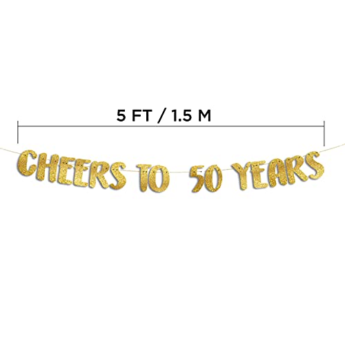QUALITATIV HOCHWERTIG: Unser Cheers to 50 Years-Banner in Glitzer fällt nicht nur auf, sondern ist robust und langlebig. So können Sie die Wanddeko über Jahre hinweg an Ihre Freunde verleihen. Aber nur, wenn die auch 50 Jahre durchhalten! Länge: 150 cm.