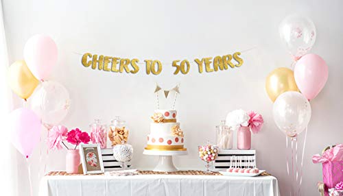 ZUM 50. JAHRESTAG: Der 50. Jahrestag steht vor der Tür. Wer schon so lange dabei ist, braucht eine besondere Dekoration zu seinem Fest. Unser Glitterbanner „Cheers to 50“ ist für alle, die über die Jahrzehnte durchgehalten haben.