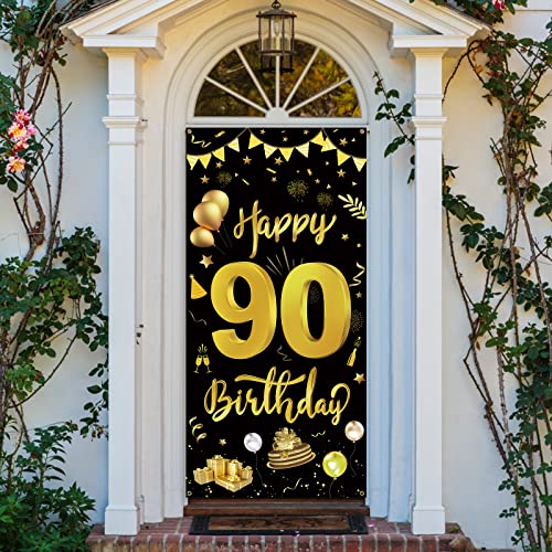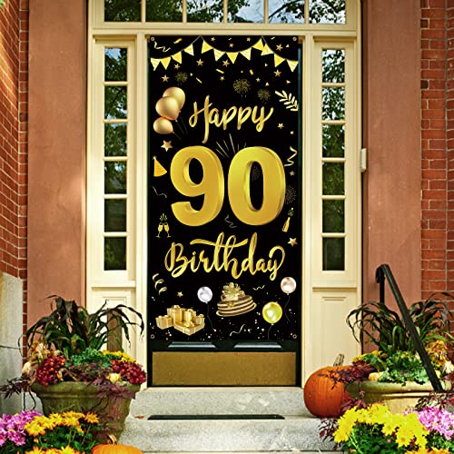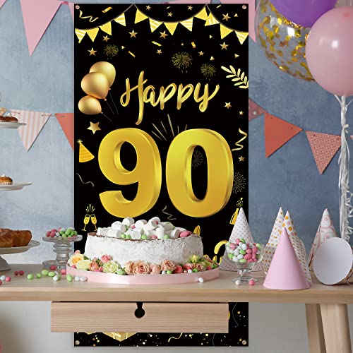 ✅ 【Packliste】GoldRock 90 Geburtstag Mann Frau BannerDekoration Packliste: Sie Erhalten 1 Pcs Schwarz-Goldenes Türbanner zum 90. Geburtstag, 1 Pcs 6 m langes Schwarzes Band. Banner Geburtstag Mit Einer Länge von 185 cm und Einer Breite von 90 cm ist Das Happy Birthday Banner Groß Genug, um es Problemlos an Türen, Wänden und Als Hintergrund für Dessert und Geschenktische Anzubringen. Es Kann Auch Als Requisite für Geburtstags Fotokabinen für Frau/MannVerwendet Werden.
