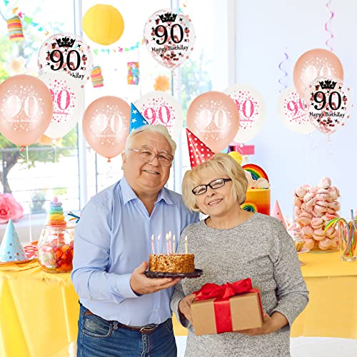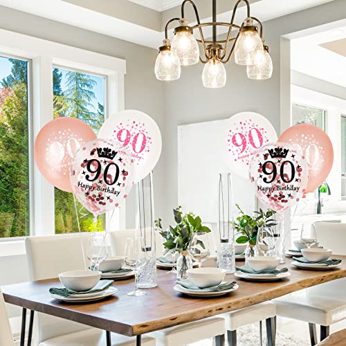 🎈【90 Geburtstag Deko Set】 Buntes 90. Ballons Geburtstag Set mit 10 Pcs Zahlenballons, 5 Pcs Folienballons Geburtstag, 1 Stück 10 Meter Ballonband. Hergestellt Aus Hochwertigem Naturlatex, Langlebig und Ungiftig. Auch Nach Der Erweiterung Können Auffällige Drucke Lebendig und Fett Bleiben.Die Kombination aus Weiß und RoséGold Ist Romantisch und Hochwertig Perfekt für Frau und Männer.