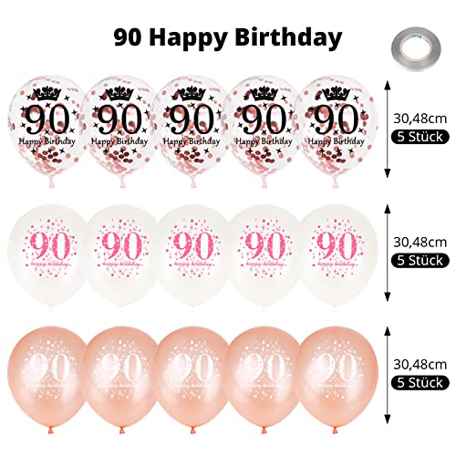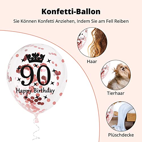 🎈【Helium Luftballons Geburtstag 90】Der Luftballons zum 90 Geburtstag Kann mit Einer Pumpe Oder Einem Heliumtank Aufgeblasen Werden, Perfekt für Die Innen und Außendekoration. Überrasche Einen lieben Menschen mit bunten Latexballons! Nachdem Sie einen Ballon über Ein Kleidungsstück Gerieben Haben, um Luftstatik zu Erzeugen, Bleibt Konfetti an Der Innenseite Des Ballons Hhaften. 5 Pcs Elegante Luftballons mit Rosegold Konfetti. Jede Party ist Sehenswert!