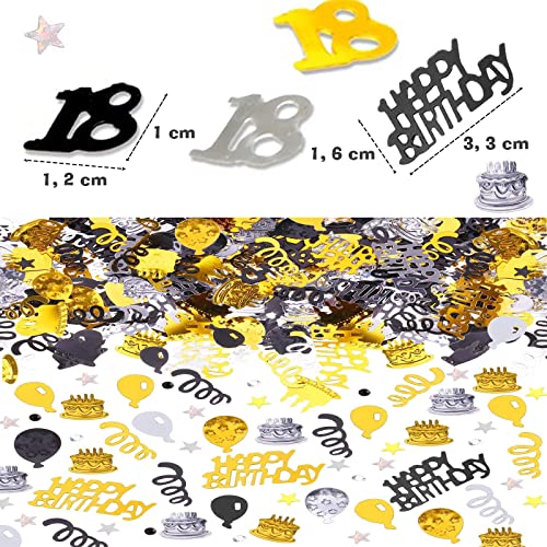 ✅【Schön und Bunt】Farbkombinationen Aus Schwarz, Silber und Gold Machen Veranstaltungen und Partys Lebendiger und Eleganter; Wenn Sie Planen, Eine Party zum 18. Happy Birthday Konfetti Tischdeko ist Die Ideale Dekoration, um Ihren Geburtstag zu Feiern, Ihre Geburtstagsfeier zu Akzentuieren, Ihren Eigenen Anlass Einzigartig und Auffällig zu Machen und Andere zu Beeindrucken. Hinweis: Bei Der Anwendung ggf. Etwas Wasser Nachgiessen, Damit Das Konfetti Nicht vom Wind Weggeweht Wird.