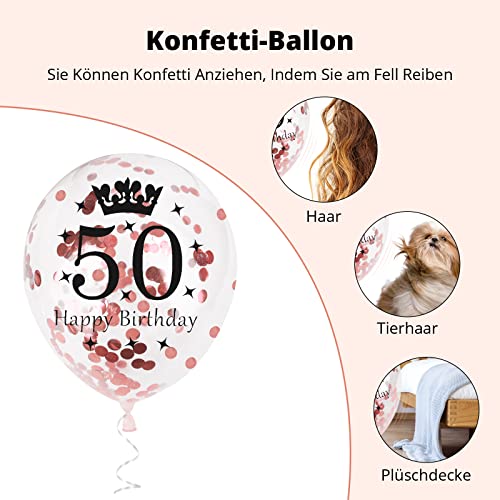 【Einfach Zu Verwenden】 Der roségoldene Ballon zum 50. Geburtstag kann mit einer Pumpe oder einem Heliumtank aufgeblasen werden, perfekt für die Innen- und Außendekoration. Überrasche einen lieben Menschen mit bunten Latexballons! Nachdem Sie einen Ballon über ein Kleidungsstück gerieben haben, um Luftstatik zu erzeugen, bleibt Konfetti an der Innenseite des Ballons haften. 5 elegante Luftballons mit goldenem Konfetti. Jede Party ist sehenswert!