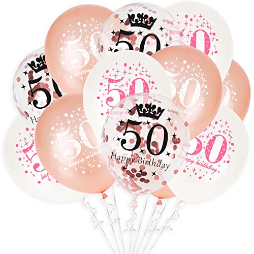 【Luftballons 50. Geburtstag】 Buntes Geburtstag Deko Set mit 10 Zahlenballons, 5 Folienballons Geburtstag. Die Kombination aus Weiß- und RoséGold Ist Romantisch und Hochwertig.Wunderschöne Partyballons Sind Ideal für Mama und Papa, Großeltern.