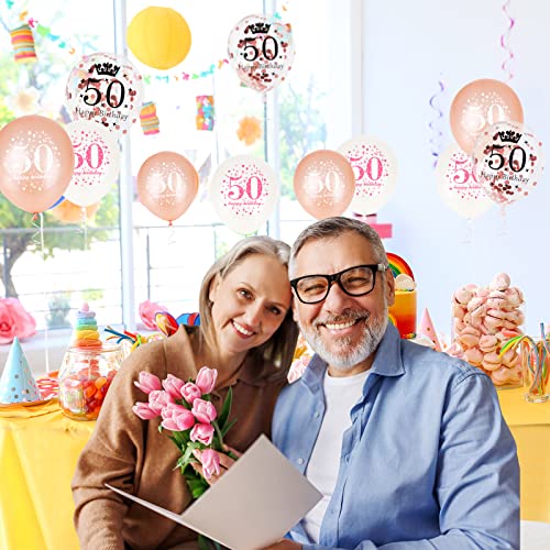 【Perfektes Geschenk zum 50. Geburtstag】Themenbezogene Geburtstagsdekoration in Weiß- und RoséGold, 50. Geburtstag Deko Set. Geburtstag Frau Oder Mann, Eine üBerraschung für MäNner und Frauen, Ideale Geschenke für Familie und Freunde. Der 50. Geburtstag Ist Der Wichtigste Geburtstag. Viel Spaß Damit!