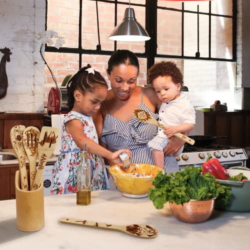 Details: Gravierte Holzlöffel-Set mit 5 – lustige magische Bambus-Löffel, Küchenzubehör zum Kochen, Premium-Qualität…