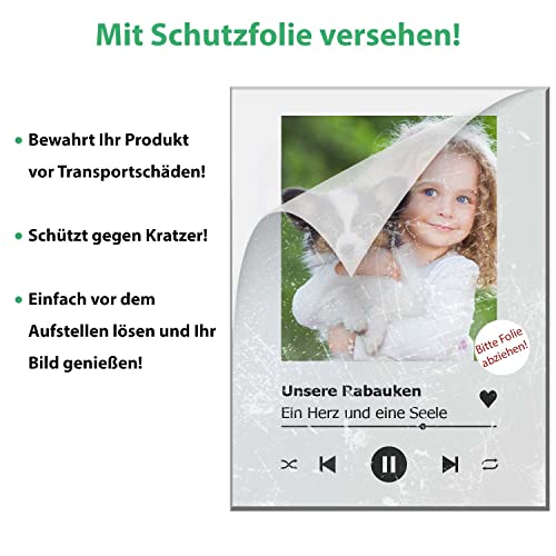✅ QUALITÄT DIE ÜBERZEUGT – Das Song Cover misst 20 x 15 cm und besteht aus 3 mm starkem Acrylglas in kristallklarer Hochglanzoptik, wahlweise auch in Pastellmint, Pastellblau oder Pastellrosa. Durch farbdetailliertem UV-Direktdruck wird ihr Foto in bester Qualität dargestellt. Damit dem Bild auf dem Weg nichts passiert wird es mit einer Schutzfolie versiegelt. Diese sollte vor dem Aufstellen entfernt werden