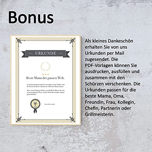 TOLLES GESCHENK – Oma ist die Beste! Diese Küchenschürze ist ein perfektes Geschenk für die Großmutter. Mit dem PDF gelieferte Urkunde wird das nochmal bestätigt.