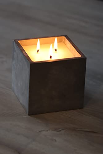 Details: Große 3 Docht Design Kerze aus Beton Würfel und Topf Gedankenwunder Manufaktur