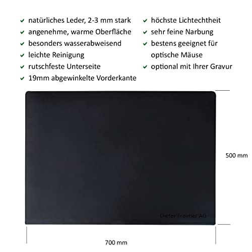Große Schreibtischunterlage mit Kantenschutz aus hochwertigem Büffelleder mit den Maßen (ca.): 70 x 50 x 0,2 cm, Größe XL, Gewicht 1.150 Gramm, erhältlich in den Farben Schwarz, Braun, Cognac-Braun, Natur-Beige, Oliv-Grün, Dunkel-Grau