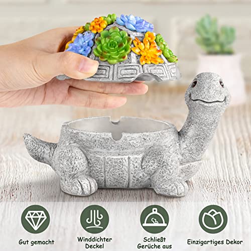 🐢 Einzigartiges Design, der niedliche Schildkröte Aschenbecher hat einen sukkulente Blumen- Deckel, der lebendig und auffällig ist. Dieser Aschenbecher hat nicht nur einen guten Sammlerwert, sondern bringt auch exquisite Kunstdekoration auf Ihren Schreibtisch.