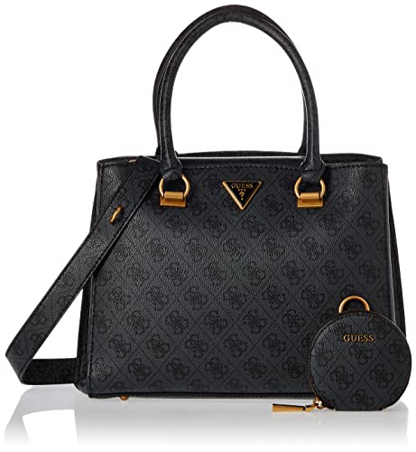 Modisch elegante Handtasche von Guess mit schönem Muster. Die Tasche hat zwei Hauptfächer und ein mittig platziertes Reißverschlussfach, das für zusätzlichen Stauraum sorgt. Davon lässt Im Inneren befinden sich verschiedene Fächer wie z.B. auch ein Handyfach für eine bessere Übersicht. Dank des beilegenden Umhängeriemens lässt sich die Tasche auch einfach als Umhängetasche tragen.