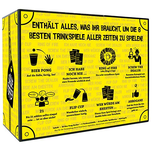 🎁 IDEALES PARTYSPIEL GESCHENK – Party-zubehör zum Verschenken, mit dem Ihr sofort loslegen könnt. Nur den Kater danach ist es besser alleine auszukurieren! Der Spaß kann beginnen!