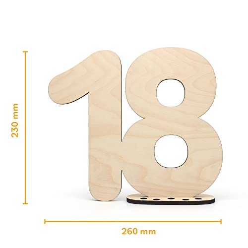 Gästebuch Deko Holzahl: 18 – zum selbst beschriften, bekleben und schmücken, mit Löchern zum einsetzen von Kerzen, Geldgeschenk oder Gutschein