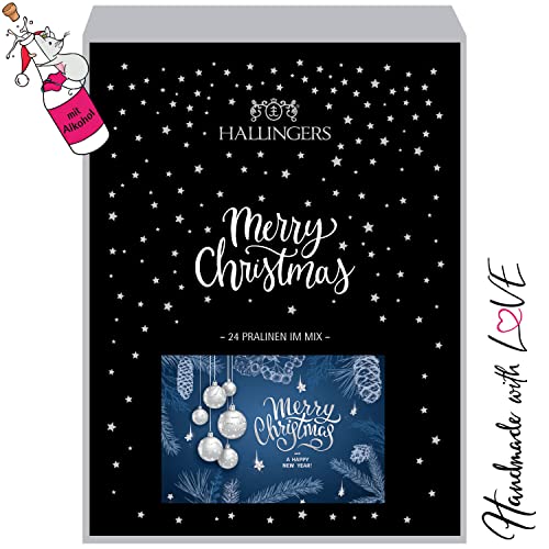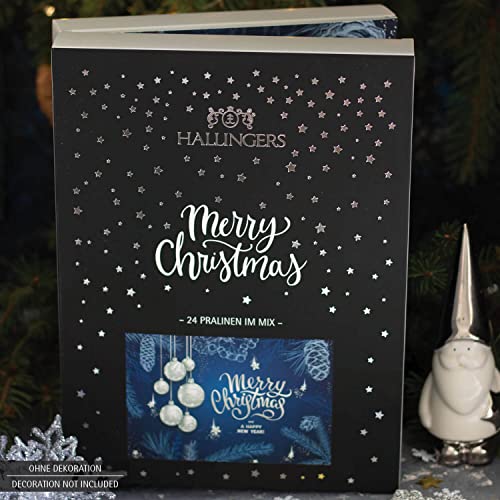 Details: Hallingers 24 Pralinen-Adventskalender, teilweise mit Alkohol (300g) – Blue Christmas (Buch-Karton) – Weihnachten 2023…