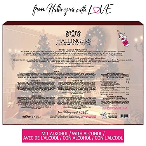 Details: Hallingers 24 Pralinen-Adventskalender, teilweise mit Alkohol (300g) – New York (Advents-Karton) – Weihnachten 2023, Für…