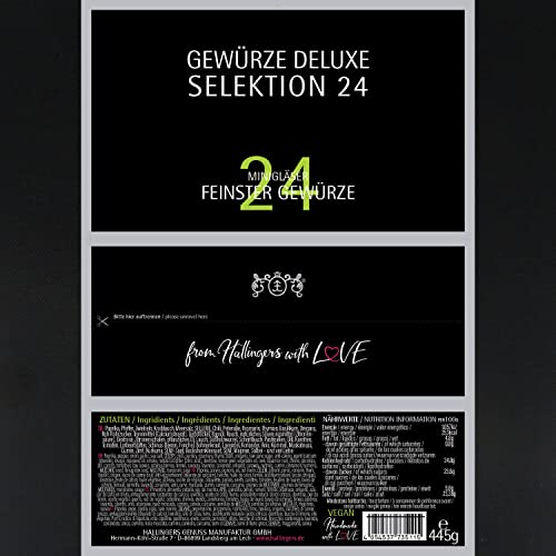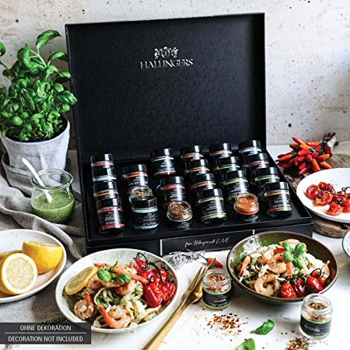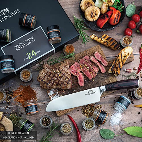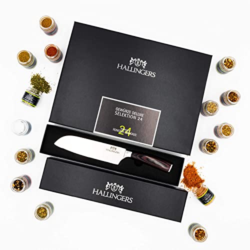 Details: Hallingers 24er Gewürz-Geschenk-Set & Premium-Messer (445g) – Gewürze Deluxe Selektion 24 & Premium Santoku (Set…